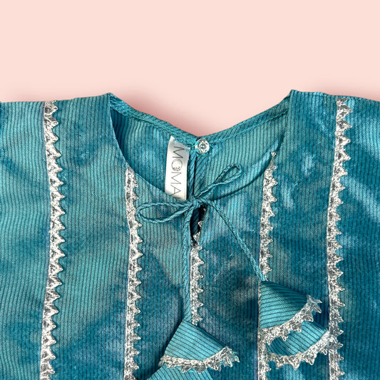 Beautiful Taffeta Silk Frock with Soft Fur Short Jacket.
